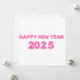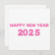 Gott nytt år 2025-kort, med transparent bakgrund. Det stilrena teckensnittet är i attraktiv rosa färg med ballongliknande 3d-design.