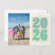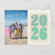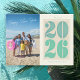 Skicka dina nyårshälsningar med stil med detta moderna vykort från 2026! Med stora, dekorativa turkosa siffror "2026" till höger och utrymme för ett anpassningsbart foto till vänster är detta vykort perfekt för att dela en favoritminne från en semester vid stranden eller vilket personligt foto som helst. En vit handskriven "Godt nytt år" hälsning visas mot en levande blå himmel, medan ett avslappnat meddelande säger: "Vi ses 2026 – Skål, familjen Brown." Alla textelement är helt anpassningsbara, vilket gör det ideal för familjer eller par som skickar avspända, glada hälsningar - oavsett om det är från en semesterresa eller hemma.