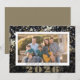Detta nyårskort har en skimrande bakgrund av guld- och silverstjärnor på svart. Designen accentueras med året som visas i en fet font. Anpassa detta stilrena gratulationskort med ditt favoritfoto. Fotografi © Storytree Studios, Stanford, CA