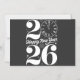 Fira 2026 med stil! Denna eleganta nyårsdesign har fet retrotypografi, en klassisk romersk sifferklocka nära midnatt och festliga fyrverkerier presenterade i rent vitt på en mörk bakgrund. Perfekt för nyårsaftonsteman, högtidlig dekor eller digitala projekt som välkomnar det nya året.