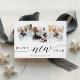 Eleganten med ett nytt årskort innehåller tre kvadratiska foton i en kollagelayout, med "gott nytt år" överlagrad i svart skript och blockering. Anpassa med ditt eller dina namn och anpassningsbarnas meddelande under. Kort tillbaka till en neutralt botaniskt mönstrad bakgrund för ett modernt men högtidligt nytt år hälsning.