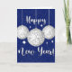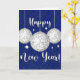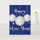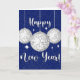 Funky disco bollar med ord Gott nytt år mot mörk blått bakgrund. Insidan läser: "Önskar dig allt gott under det kommande året."