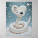 Kute, vit orm med blått ögon välkomnar det nya året 2025 med ord: "Gott nytt år".