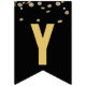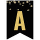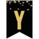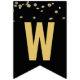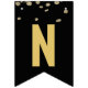Dekorera för firande med Gott nytt år Modern Black Party Bunting Flaggor. Den har en elegant med svart bakgrund och konfekti från guld faux glitter på den övre delen av varje brev. Avståndsbehållaren och det avslutande flaggorna är designade med svart och guld lodrät rand. Texten är "Gott nytt år" i faux guld fet brev.