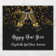 Pärlande glasögon från vin som är mousserande på vin-etiketter för Nyårsafton party. Anpassa med ditt namn. Glasögon med gnistrande vin och konfektyrer från guld.