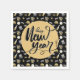 Gott nytt år-party-svart bakgrund, kyss mig, bukslips, silver och guld hat, champagne flaska och dryck, midnattsklocka