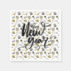 Gott nytt år-party-vit bakgrund, kyss mig, bukslips, silver och guld hat, champagne flaska och dryck, midnattsklocka