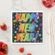 Den här roligten är nyårstecknet för utformningen av meddelandet "GOTT NYTT ÅR!" med brev färgad med en regnbågsspektrumövertoning som mönster. Den har också en levande, spännande, flerfärgad stjärnform mönster. Napkins som dessa kan användas vid ett nyår i party.