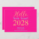 Detta är en modern och chic, Gott nytt år, Nyårsafton, design. Det går i riktning mot shock rosa med ett modernt typskript. Det har budskapet: "Hej nytt år! 2028" på framsidan och baksidan, och meddelandet "Gott nytt år! Från Johnsons" på framsidan. Om du vill anpassa ditt namn, firande-år och meddelande med hjälp av personlighetsknappen kan du även ändra resten av texten om du vill. Om du vill ändra färg eller teckensnitt markerar du verktyg som redigerar designen. Om du behöver hjälp med att anpassa, matcha produkter eller ett anpassad design kontaktar du mig via zazzle-chatta eller e-post: ursuladawnmoon@gmail.com Gott nytt år!