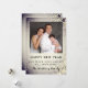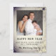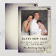 Fira det nya året genom att skicka ut en hälsning för att önskar fred, kärlek och glädje till alla. Gott nytt år med familjefotot. Ändra detta för ditt eget. Personifiera ditt namn och din hälsning. Den silverfärgade snöscenen fortsätter på baksidan.
