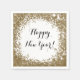 En vit Gott nytt år-napkin med tryckt guld glitter-design och ett skriptmeddelande. Redigera med textredigeraren för att göra ett eget meddelande om du vill. Perfekt för både en avslappnad och finare Nyårsafton samlas.