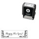 Rubber frimärke med texten: Gott nytt år! Texten är uppbyggd av en traditionell julklapp ram med gryliga löv och bär.