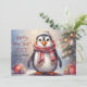 Anpassa dina nyårshälsningar med vårt söta pingvinkort! Anpassa ditt meddelande för en speciell touch, sprid värme och glädje denna högtidssäsong