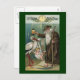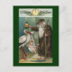 Vintage nyårskort som visar Far Time hälsning det nya årets ankomst - ett baby levereras med stork.