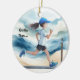 Den här charmerande designen visar en kvinnlig springer som är skuren i blått sken och blå löpskor, en ombre bakgrund i blå nyanser. Detta står vid sidan av frasen "Gotta Springa", som är märkt på en keramisk keepéprydent. Ordspråket kan ändras på önskat sätt.