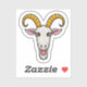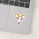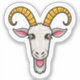 En vismisk dekal för gethuvud med en tecknad-stil-get med stort, uttrycksfullt ögon och ett stort, lekfullt leende. Gethornen är formade som party hattar och har tasslar hängande från dem. Den övergripande utformningen är livfull och glad, perfekt för att dekorera brev, anteckningar och social-mediaposter. Dekalen förmedlar en känsla av roligt och tänt humor.