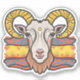 En viskartad och öga-fångande gethuvuddekal med ett lekfullt uttryck. geten har ett par framstående horn och dess ögon gnistra med ett elakt gleam. Bakgrunden till dekalen är en mjuk övertoning av blues och lila, som accentuerar getens pulserande färg. Det här klistermärket skulle vara perfekt för att dekorera en bärbar dator, bärbar dator eller yta som behöver lite stollig.