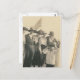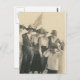 Detta är ett fantastisk gammalt foto av en grupp människor som står framför flagga medan en ung pojke använder kikare.