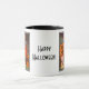 En mugg med en konstig Halloween-tecknad om en pumpfamilj. Bakgrund, bild och text kan vara personlig. Originalteckningar efter DBcartoons.