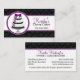 ©Socialitedesigner 2012. Vår gourmet- design för tårtabagerivisitkorten har en elegant tårta på en stativinsida ett snöre att cirkla. En perfekt visitkort för en bageriaffärs- eller tårtaformgivare. Personifiera denna tårta-, snöre- och damastvisitkort med din information.
