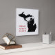 The state of Michigan is in black, with a red heart representing the Holland location and its GPS coordinates on a neutral speckled background.