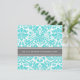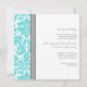 Eleganta bröllopsinbjudningar för förnyelse av löften i chic och elegant turkos himmelblå, kolmörk grå och vit klassisk vintage damaskus blomster mönster med fullt anpassningsbar text för att inkludera dina detaljer för förnyelseceremoni. Kontakta oss för en anpassad färg.
