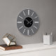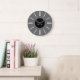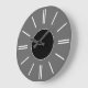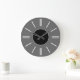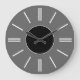 En enkel väggklocka med en grå bakgrund, svarta visare ett svart centrum och enkla, moderna vita linjer för att markera timmarna. Anpassa den för att lägga till din text eller bilder, ändra bakgrundsfärger med mera.