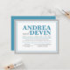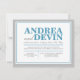 Vigselreception ENDAST inbjudningar med en blå och grå typografisk design. (Med hur exakt denna design är anpassad, rekommenderas att du klickar på den orange "Anpassa den!" knappen för att flytta och ändra textstorlek vid behov.) Dessa inbjudningskort används när paret har ett destinationbröllop eller en liten privat ceremoni och endast bjuder in sina gäster till eftervigselns, receptionens firande.