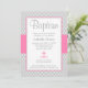 En stilren rosa och grå dop- eller dopfestinbjudan. Med grått och vitt chevronmönster och rosa kors. Trendigt och modernt - enkelt att anpassa för ditt evenemang!