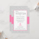Grå Chevron Rosa Kors Flick Dop Dopfest Inbjudningar
