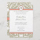 Grå Damask med Korall & Grå Bröllopsinbjudningar Inbjudningar