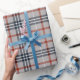 Grå färg/röd pläd som slår in glansigt papper - presentpapper