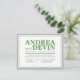 Vigselreception ENDAST inbjudningar med en grön och grå typografisk design. (Med hur exakt denna design är anpassad, rekommenderas att du klickar på den orange "Anpassa den!" knappen för att flytta och ändra textstorlek vid behov.) Dessa inbjudningar används när paret har ett destinationbröllop eller en liten privat ceremoni och bara inbjuder sina gäster till efterfesten efter bröllopet.