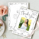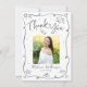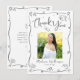 Se till så att din favoritstudent visar uppskattning till alla som stödde deras milstolpshändelse! Skicka ut detta roliga, lekfulla, enkla, moderna, personliga fototackkort. På framsidan finns rolig, mjuk, grå handskriven typsnitts typografi och handritade examensikoner skiss doodles, tillsammans med ditt anpassade foto, över en minimal vit bakgrund. Lägg till fotot du väljer och anpassa den anpassade texten med din elevs namn och examensår. På baksidan skriver du in ditt anpassade meddelande eller tar bort texten helt så att du kan skriva din egen handskrivna anteckning. Matchande inbjudningar, adressetiketter, banderoller, klistermärken, handfläktar och andra examenspresenter finns också tillgängliga i denna trendiga och stilfulla kollektion. Garanterat att lägga till en stilfull touch till deras korrespondens!