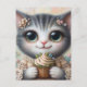 Grå Katt Med en Cupcake Vykort