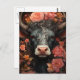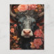 Grå ko med lockigt hår i blommorna vykort