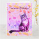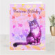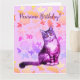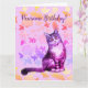 Akvarellmålning av en långhårig katt, blommor i bakgrunden, Pawesome födelsedag!