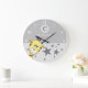 Grått och vitt med söt giraff och stjärnor, klocka. Monogramnamn. Dekoration för barnkammare eller lekrum, för barnrum. Gåside.