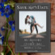 Detta Moderna Foto Spara Datum-kort kommer med en enkel textdesign, ett elegant banderoll i en modern ram som väntar på ditt foto och dina bröllopsdetaljer för att anpassa. Ytterligare färger finns tillgängliga med denna design.