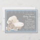 Bedårande babyblå och grå teddybjörn baby pojke shower inbjudan. Du kan enkelt anpassa denna söta teddybjörn baby shower inbjudan för ditt evenemang genom att lägga till dina detaljer i typsnittsstil och färg, formulering, och du kan välja bakgrundsfärgen som du vill.