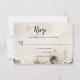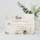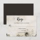 Detta RSVP-kort blandar rustik charm med fantasifull konstnärskap, med en mjuk beige bakgrund och en vattenfärgsillustration som lägger till en skogstouch som känns både lugn och inbjudande. Den övergripande designen är mysig och naturinspirerad, med dekorativa teckensnitt och en handmålad estetik som antyder en varm, personlig firande – kanske en som är bofast på landsbygden eller omgiven av höstlig skönhet.