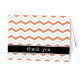 Personliga trendiga grå och orangea chevron tack-kort designade med ett orange och grått alternerande chevron sicksack-mönster, "tack" i vit skrivstil över en svart rand, och personliga på insidan med ditt eget anpassade meddelande om tacksamhet. Du kan också enkelt ta bort texten i mallens insida för att lämna dessa kort tomma för handskrivna tackmeddelanden. Detta stilrena mönster och användning av färg gör dessa kort perfekta för baby shower och bröllops shower.