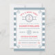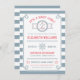 Marin tema inbjudan med ankare, kaptenhjul och sjöstjärna. Rep ram gräns. Baksidan av kortet har en randig bakgrund. Anpassa med din egen text. Vänligen kontrollera min butik för mer sådant här. Perfekt för Ocean, Hav, Sjö, Preppy eller Yacht Fester. Original Illustration av pj_design.