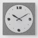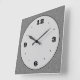 En stämningsfull klocka i stengrå med en ljusgrå mitt. Kompletterande designen är ett trendigt nummer-teckensnitt i svart och grått. Finns i runda och fyrkantiga former.