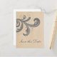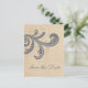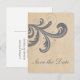 Söt och elegant Stylish Swirls Spara datum Postkort med en vacker kraftpapperstextur i bakgrunden och en snygg, blomsterliknande virveldesign i grått. Detta moderna men rustika spara datum-postkort är lätt att anpassa med dina bröllopsdetaljer. Klicka på "Anpassa" för att hitta fler anpassningsalternativ.