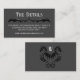 Lägg till ett informationskort så att dina gäster känner till detaljerna om ditt fantasinspirerade drak-tema bröllop i grått med svarta drakar och vita detaljer och typsnitt. Lägg till din bröllopswebbplats så att dina gäster enkelt kan svara online och hitta all information som behövs om det kommande bröllopet. På baksidan lägger du till din snart delade initial i en drakmonogram.