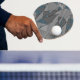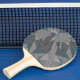 Grå trekantiga utskärningar med grova mörkblå bita pingisracket