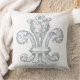 Denna är en attraktiv dekorativ kudde för ditt hem. Den har en utsmyckad vintagegrått fleur de lis på en vit att kudde.