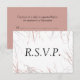En rosafärgad och grå RSVP-kort med lyxiga detaljer och mjuka, rosa och duvgrå virvlar på framsidan, och en dovt rosafärgad baksida. Alla detaljer i meddelandet kan enkelt anpassas i alternativen. Observera att detta svarskort till bröllop har skapats speciellt för att matcha en liknande bröllopsinbjudan, som du kan se här: https://www.zazzle.com/soft_rose_and_grey_flourishes_wedding_invitation-256030246220730266