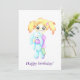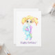 Cute lycka kramar med leksak. Den lilla rödhåriga flickan som kramar en plysblå leksak-knipa. Vattenfärgbilden ritades och skannades. Vattenfärgsliljor i öppna luft 2023. Bilden kommer att vara både en bra gåva och en underbar insida-dekoration.